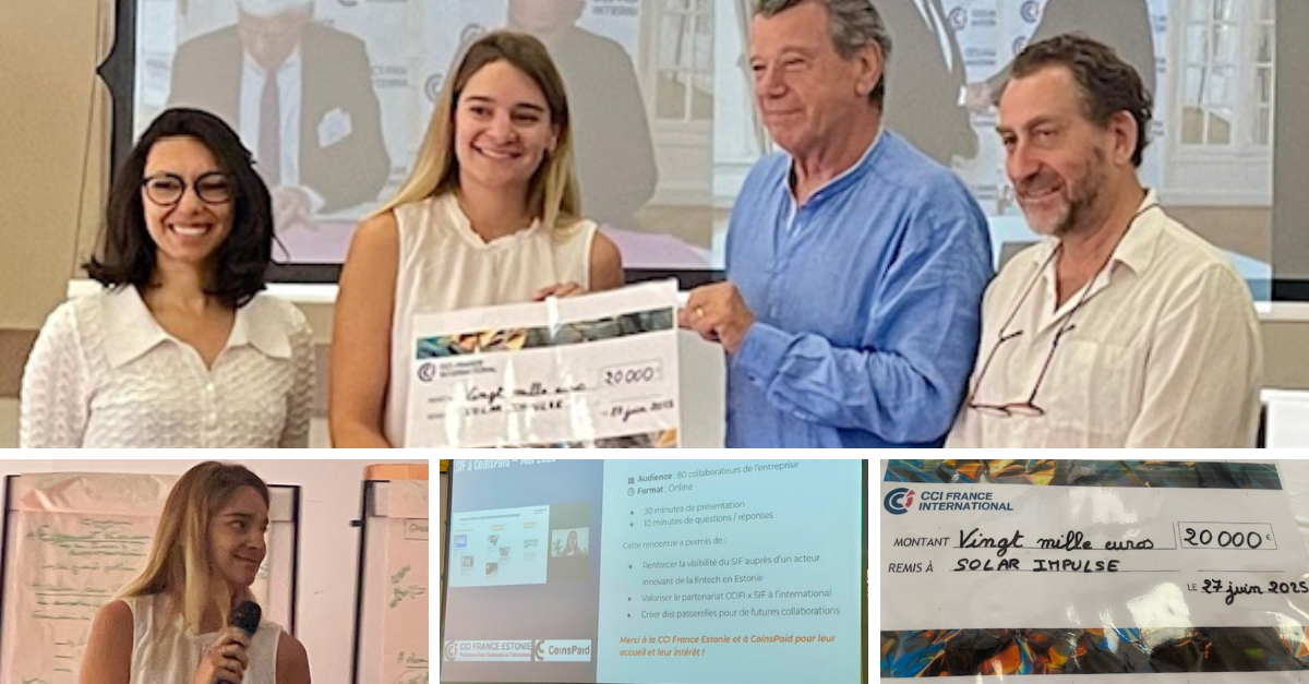 CCI France International a remis un chèque de 20 000 € à la Fondation Solar Impulse, fruit d’un défi sportif inspirant ayant mobilisé les Chambres de Commerce et leurs membres à travers le réseau mondial.